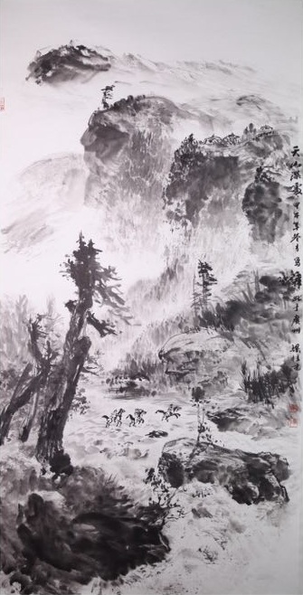横空出世 纸本水墨水彩